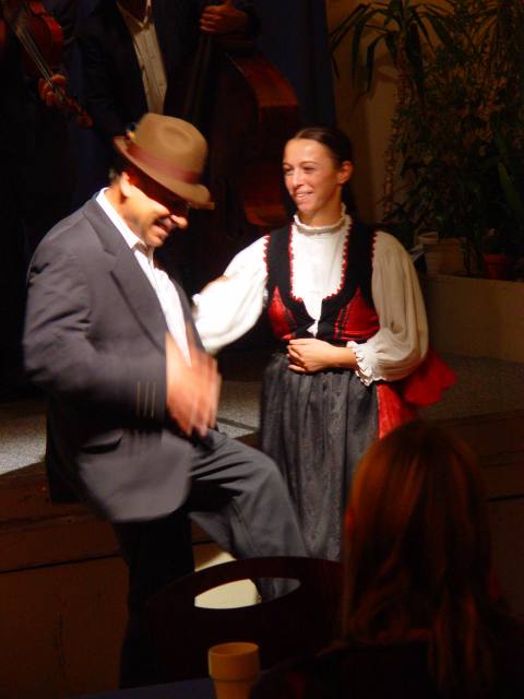 Het dorpsorkest van Palatka (Transylvanie) met een danspaar uit de stad. Een uitgebreid concert met zang en dans, achteraf dansles in de grote zaal terwijl de rest van de band nog lustig verder speelde bij de bar.